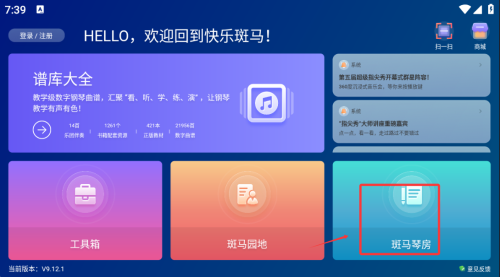 1、快乐琴房模块集成识谱练习与智能纠错双模式,完整记录练习过程与成绩数据,支持音视频回放与社交平台分享功能。