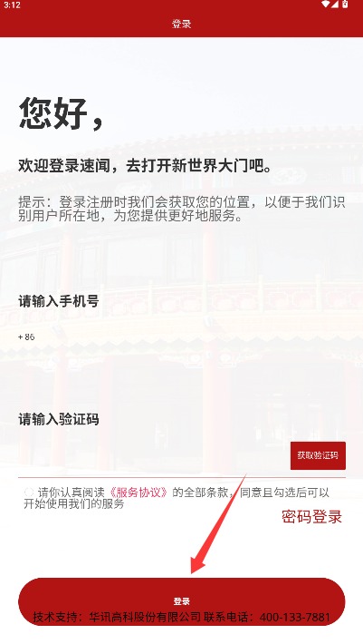 2、在登录界面输入个人手机号码并获取短信验证码,填写后完成账户登录验证。
