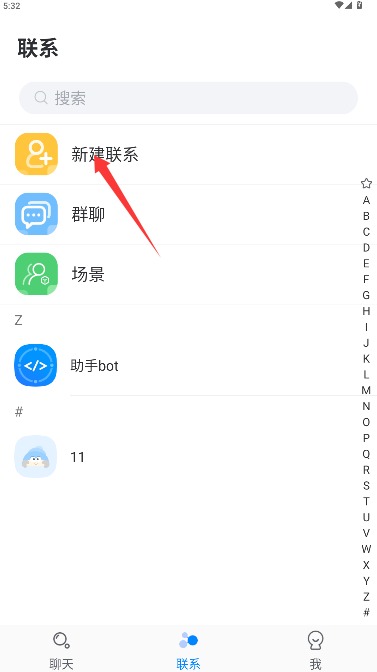3、进入联系人管理页面后,找到并点击"新建联系"功能按钮进入添加联系人界面。