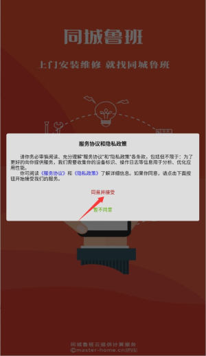 1、首次启动应用时,系统会显示用户协议和隐私政策,阅读后点击同意按钮进入主界面。