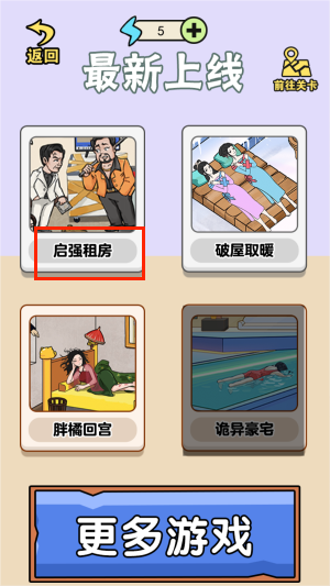 2、在模式选择界面中,系统提供多个主题玩法,其中标注为"启强租房"的模块即为本次体验的模拟经营内容。