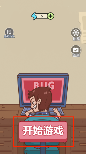 1、启动游戏程序后,主界面将显示醒目的开始按钮,点击该按钮即可载入游戏核心场景与功能模块。