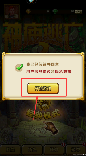 2、在游戏主菜单选择开始冒险选项,正式进入神庙探索的跑酷挑战环节。