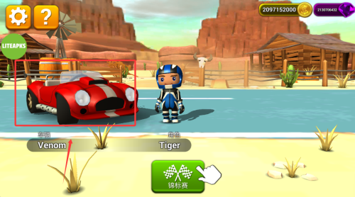 3、进入车辆陈列界面浏览全部可用车型,通过左右滑动查看并选择心仪的参赛座驾。