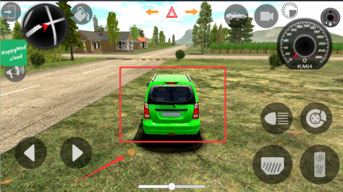 3、通过虚拟方向盘与踏板控件操纵汽车移动,注意根据路况实时调整行进方向与速度。