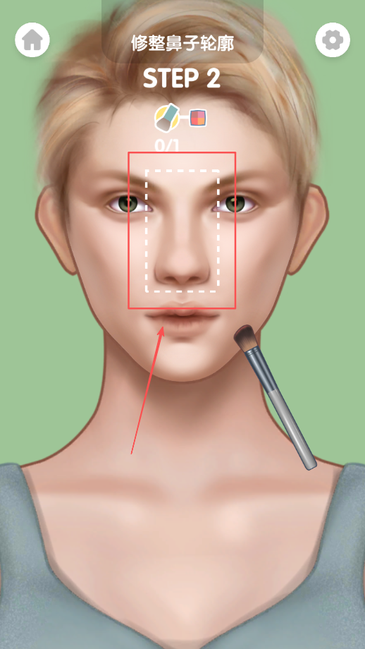 1、游戏开始后首先需要使用化妆笔仔细描绘鼻子轮廓,根据脸型特点勾勒出立体的鼻部线条,这个基础步骤决定了后续妆容的整体协调性。