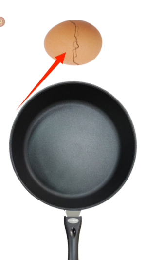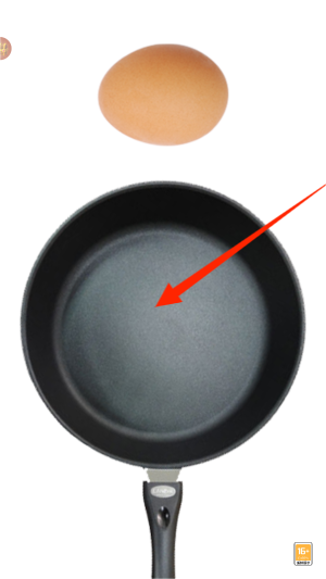 2、游戏界面顶部放置着完整的带壳禽蛋,通过手指触控可使蛋壳产生物理破裂效果,随后蛋液将落入下方煎锅。