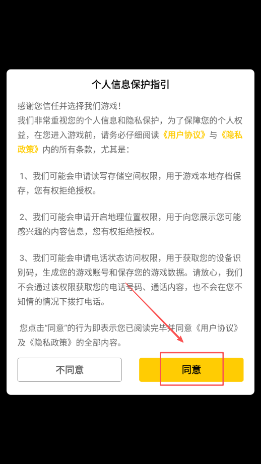 1、进入游戏后首先需要仔细阅读个人信息保护指引的全部内容条款和细则说明,点击同意并继续按钮开始游戏体验家装乐趣,完成初始设置步骤。
