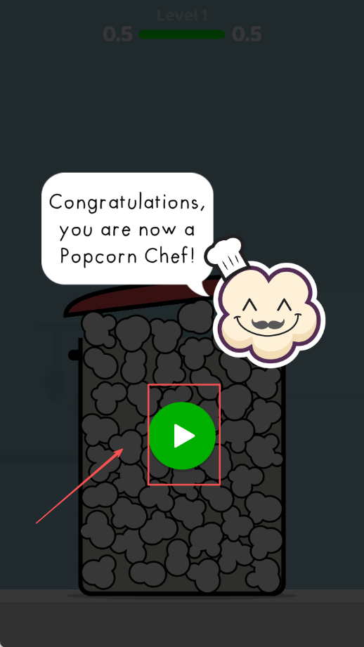 1、点击红色框内按钮开始游戏进入主界面,熟悉各个功能区域布局和操作选项,为后续制作爆米花做好准备,了解游戏基本规则。