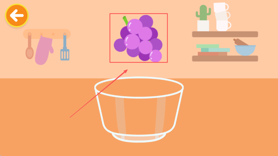 3、从丰富食材中选择喜欢的品种比如新鲜葡萄,用手指拖拽到搅拌碗里开始动手制作第一道美味甜品,体验创造的乐趣。