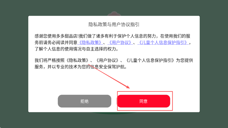 1、首先需要仔细阅读并点击同意隐私政策和用户协议的选项按钮,这是开启游戏旅程的第一步必要操作,家长可以陪同孩子一起完成这个步骤。