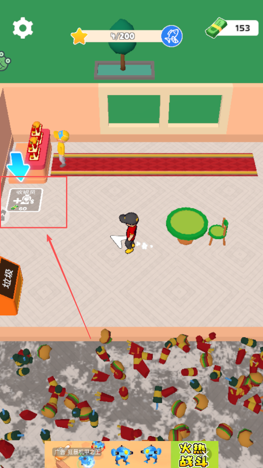 1、进入游戏后首先需要移动角色到商店的指定位置,点击雇佣按钮为店铺增添一名收银员,这是开展经营活动的第一步基础操作。