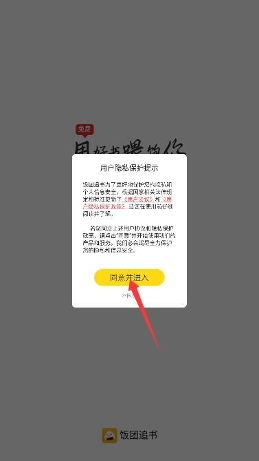1、打开应用后仔细阅读服务协议和隐私政策,确认后点击同意按钮进入应用。