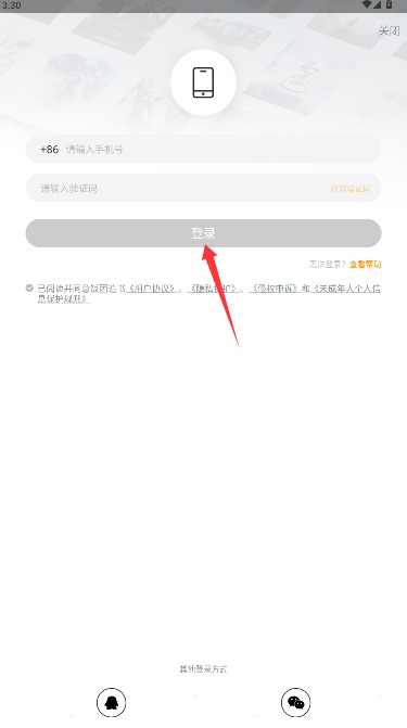 2、在登录页面输入个人手机号码及接收到的短信验证码,完成验证后登录进入。
