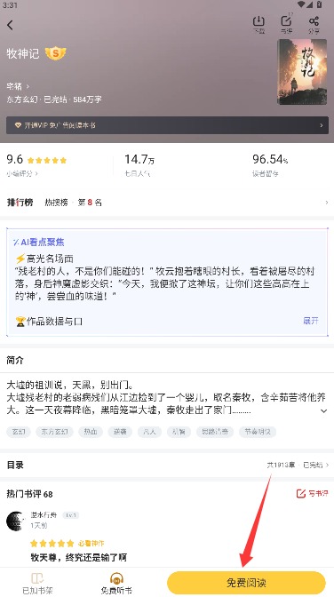 4、选择心仪的小说进入详情介绍页,点击免费阅读按钮即可开始畅享完整章节内容。