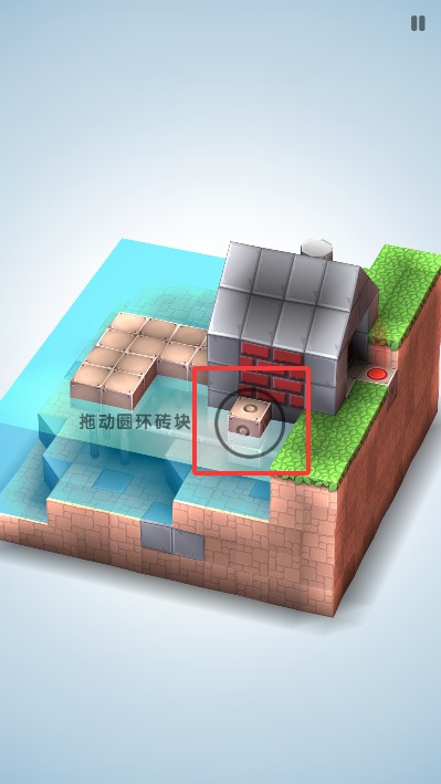 4、拖拽场景中的可移动圆环砖块搭建安全通道,引导机器人顺利抵达终点出口区域。
