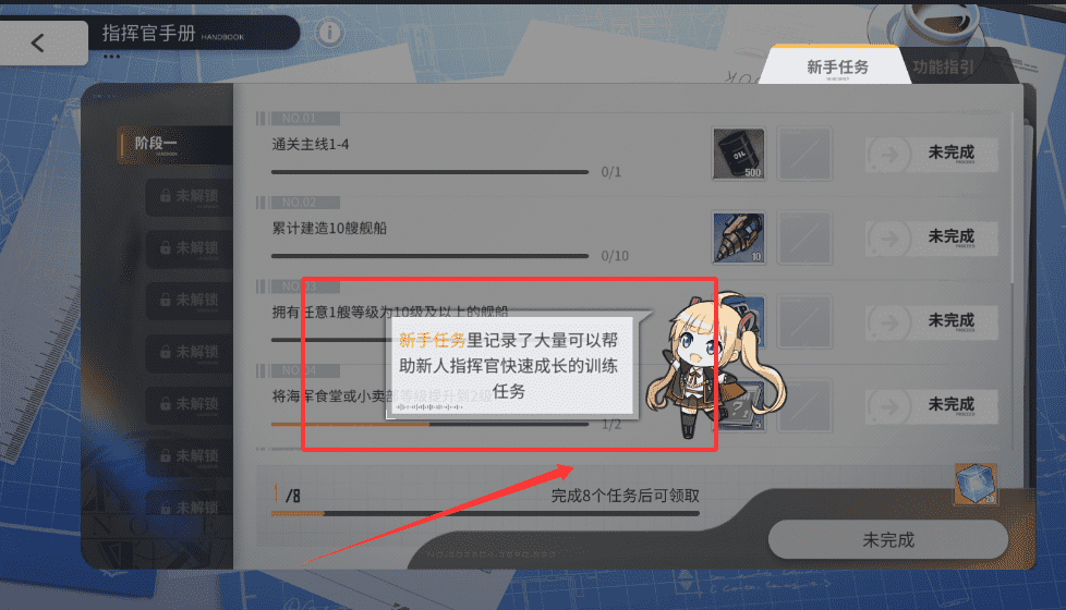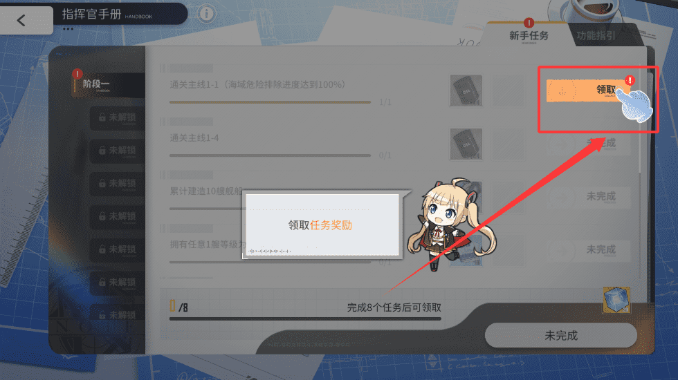 3、完成这些能领取阶段奖励,手册里共有8个任务,完成全部后还有额外奖励可以拿。