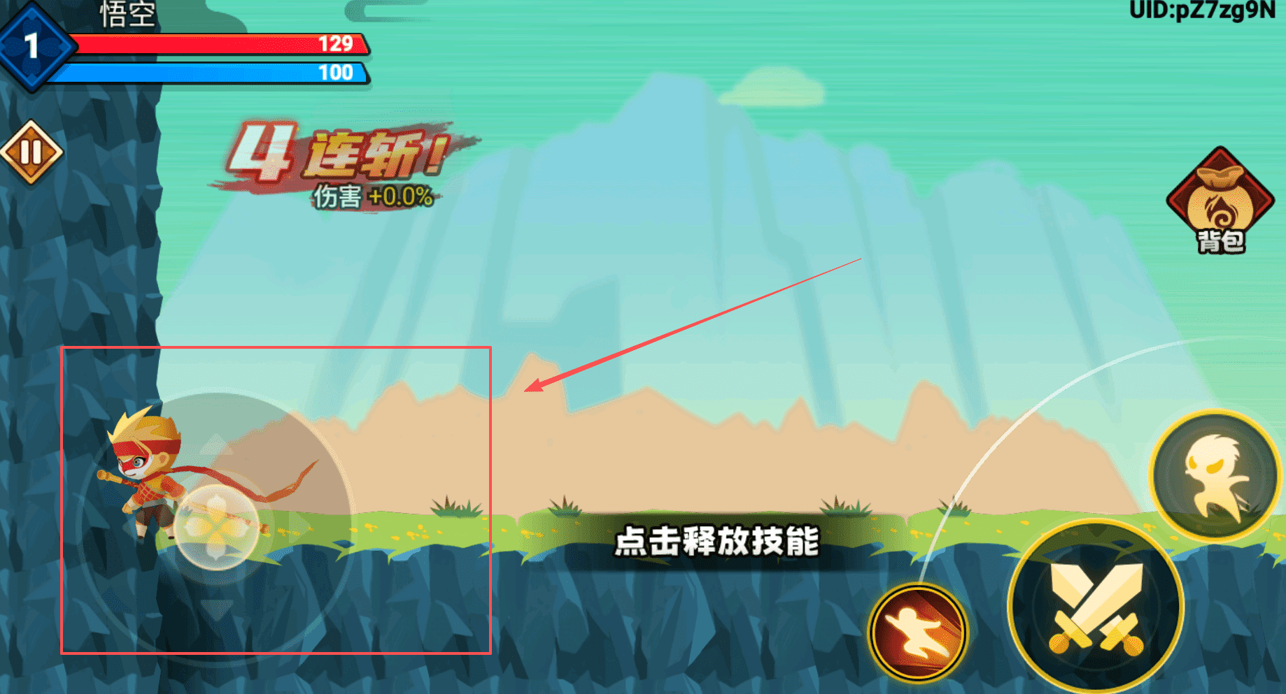 4、当角色学习技能后,比如“4连斩”,你只需点击对应的技能图标即可释放。
