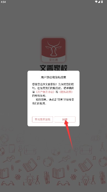 1、打开应用后仔细阅读服务协议和隐私政策,确认后点击同意按钮进入应用。
