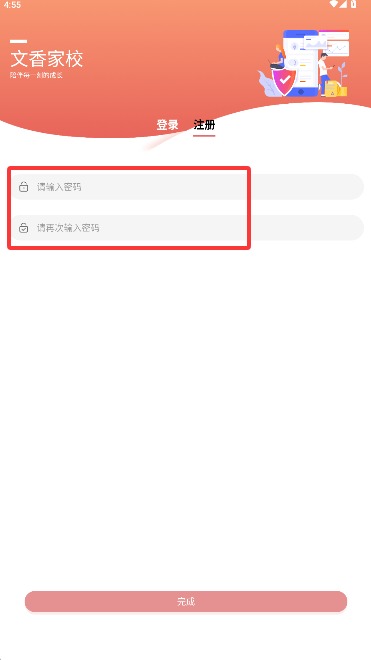 3、根据系统提示设置符合安全要求的登录密码,确认后点击完成进入信息完善界面。