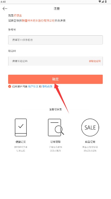 3、根据提示输入手机号码及短信验证码,点击确定后设置个人登录密码完成注册。