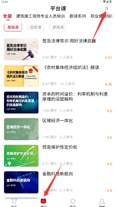 3、进入课程中心页面后,可通过搜索功能或分类浏览找到需要购买的教学课程。
