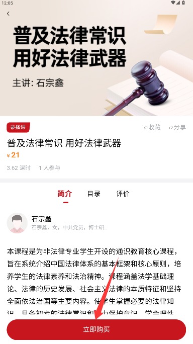 4、选择目标课程进入详情介绍页,确认教学内容与价格后点击立即购买完成支付。