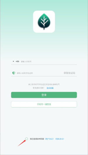 3、在登录页面勾选同意用户协议与隐私政策条款,进入身份验证步骤。