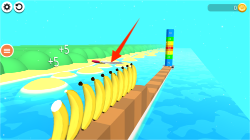 3、通过滑动屏幕操控刀具轨迹,准确切割不断移动的香蕉并保持完整形态直至抵达终点区域。