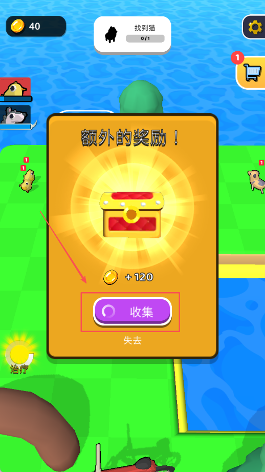 2、点击紫色收集按钮领取金币奖励,积累资源用于后续宠物培养,合理分配资源可以加速宠物成长进程,避免资源浪费。