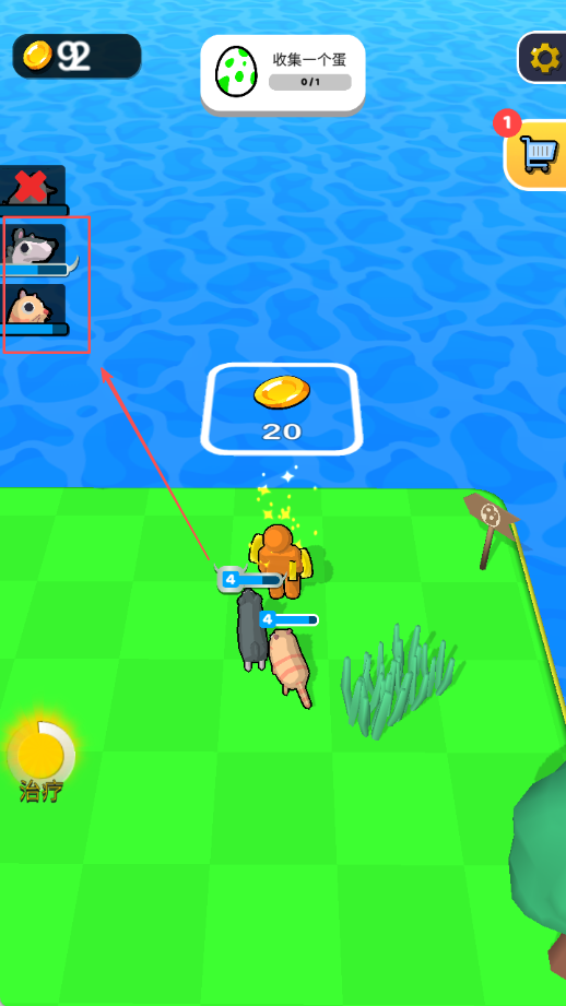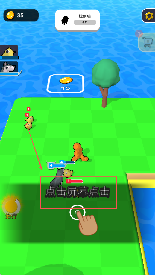 1、点击屏幕任意位置开始游戏,收集散落的金币和小鸡等基础资源,这些资源是后续培养宠物的必要准备,初始资源积累很重要。