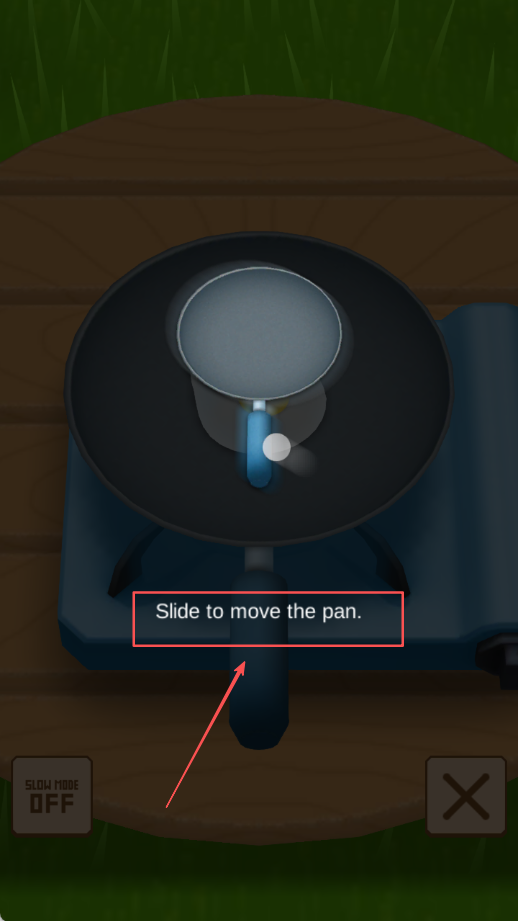 1、滑动屏幕移动煎锅位置,让食材均匀受热避免局部烧焦影响成品质量,需要保持稳定匀速移动控制火候。