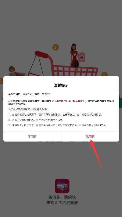1、打开应用后仔细阅读用户协议和隐私政策,确认后点击同意按钮进入应用。