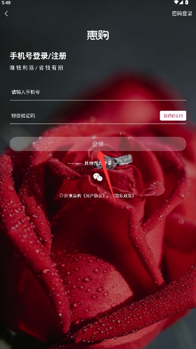 2、在登录页面输入个人手机号码及接收到的短信验证码,完成验证后进入应用首页。